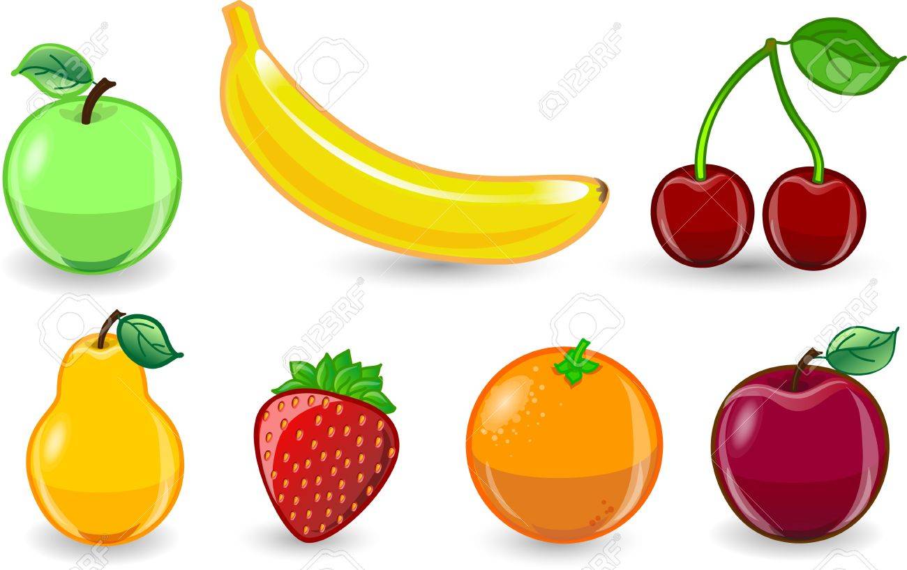 Dibujos Animados De Color Naranja Platano Manzana Fresa Ilustraciones Vectoriales Clip Art Vectorizado Libre De Derechos Image 11996231